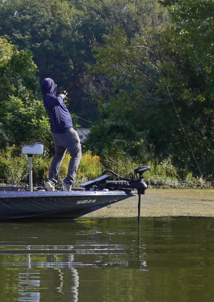 “It’s all about the chase,” he said. “The morning is the thrill. The boats get in line. [There] can be five to 200 boats, depending on the tournament. Everyone races to their spots. You get short spurts of activity and then it can be dead for three hours. There’s always one long lull during the day.”